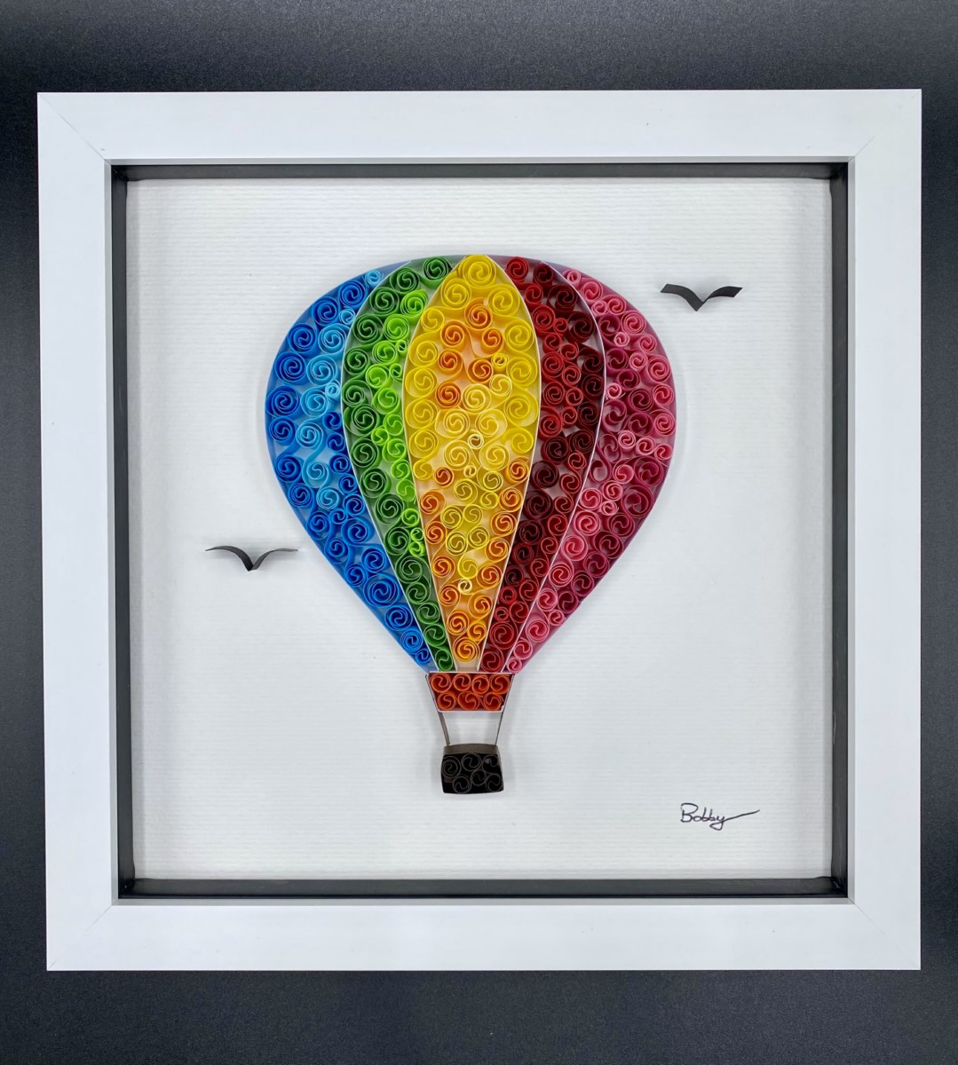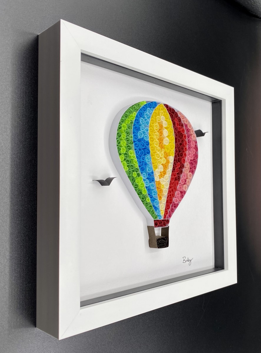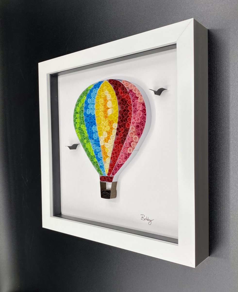 Each picture is a true labour of love which takes many hours to complete. Colourful card is individually cut into strips which are then formed into scrolls and shapes to bring the picture to life. As light picks up the graduating shades and pops of vibrant colour the pictures give the illusion of movement when viewed from different angles.