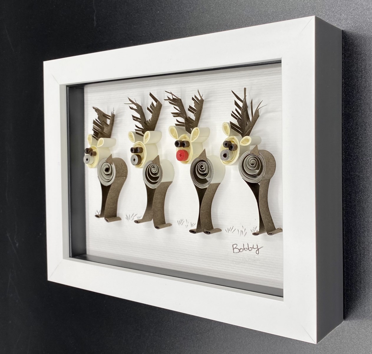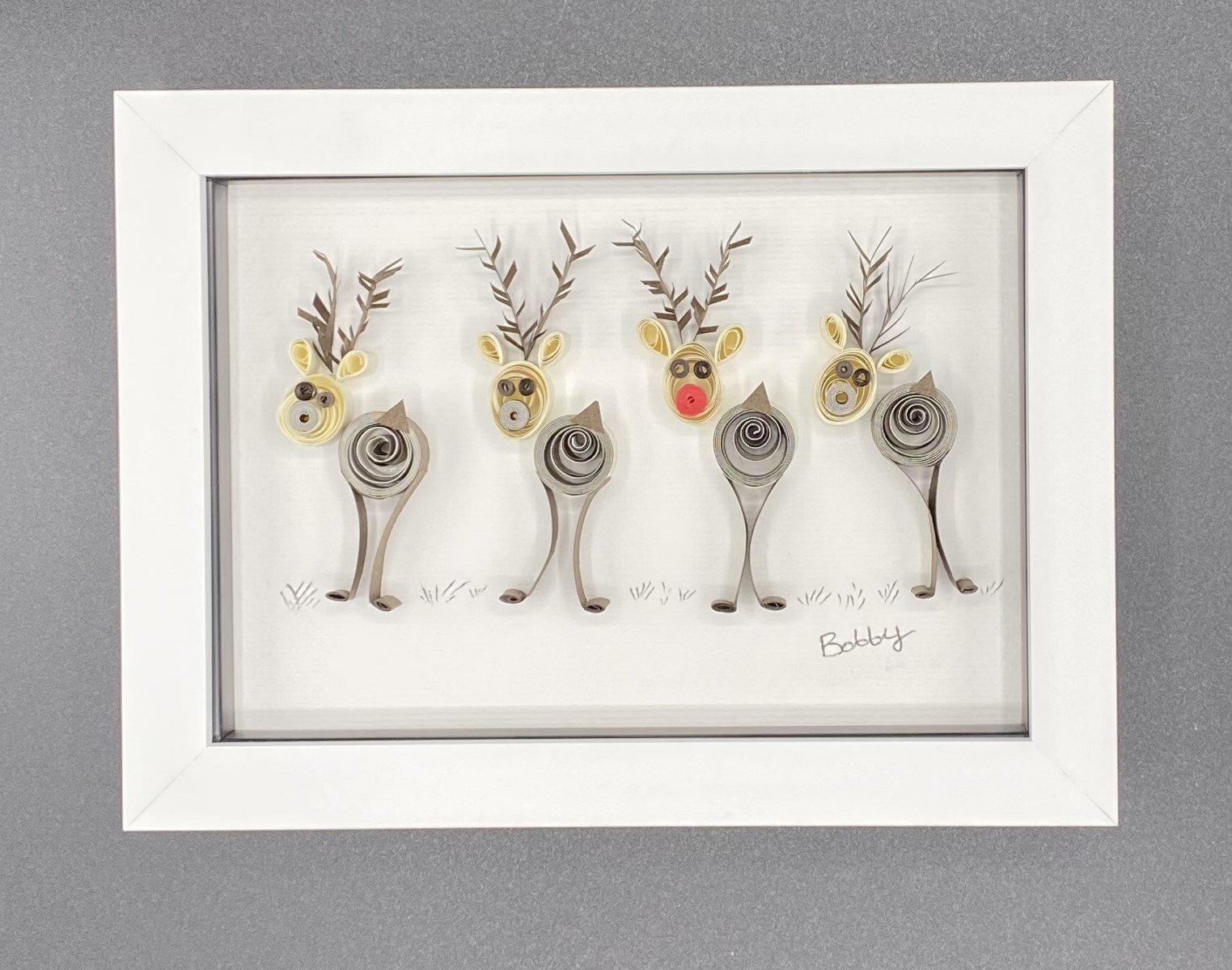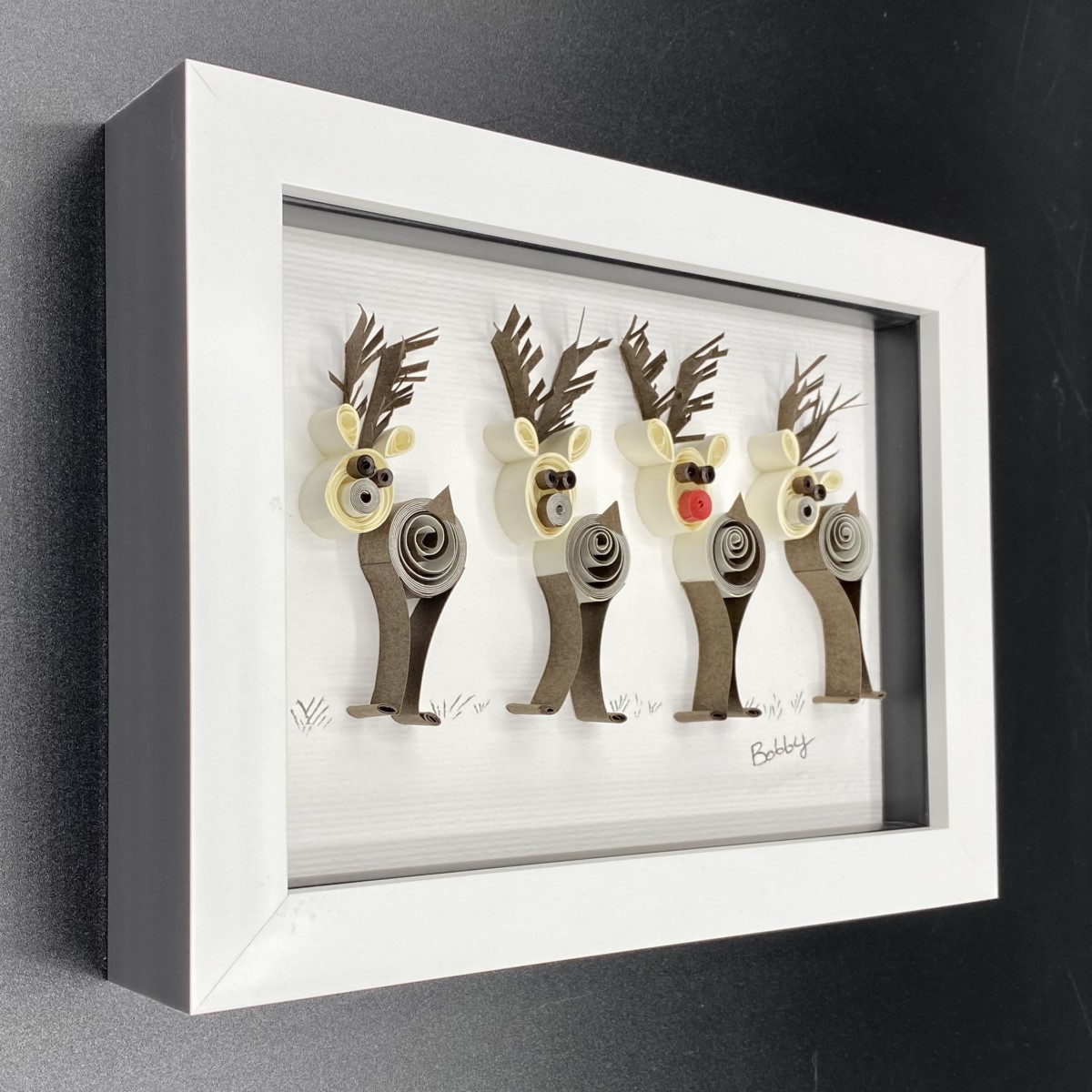Each picture is a true labour of love which takes many hours to complete. Colourful card is individually cut into strips which are then formed into scrolls and shapes to bring the picture to life. As light picks up the graduating shades and pops of vibrant colour the pictures give the illusion of movement when viewed from different angles.